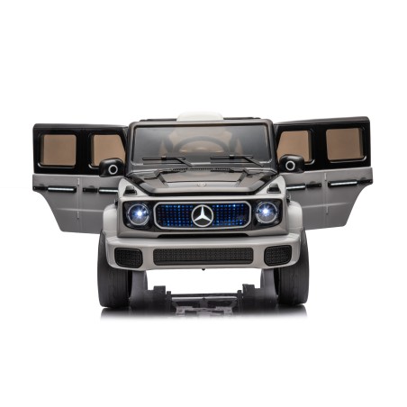 Bellissima e Nuovissima Mercedes EQG 63 12v Full Optional. Auto di altissima qualità dotata di sospensioni reali, sedile in pelle e tappetino e Ruote in Gomma. Massima sicurezza in quanto è dotata di telecomando a distanza per il controllo parentale da parte dei genitori l'auto ricca di optional monta anche un lettore Mp3 con cassa stereo, luci led, un ingresso usb per far ascoltare ai vostri bambini le musiche che piu' amano.